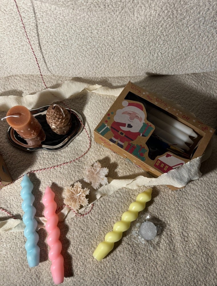 - 4 شموع طويلة ( بيضاء ساده ) او ( ملونه لولبي )