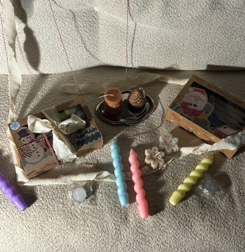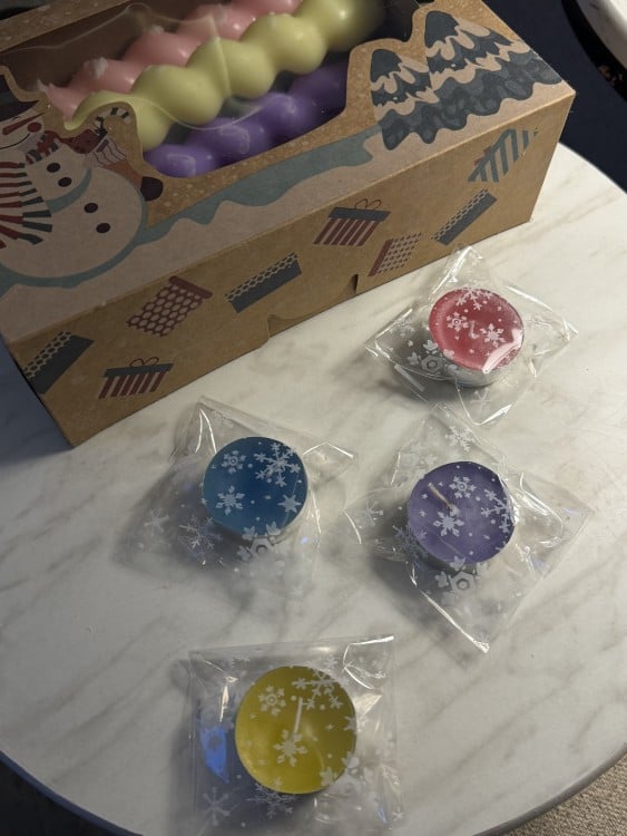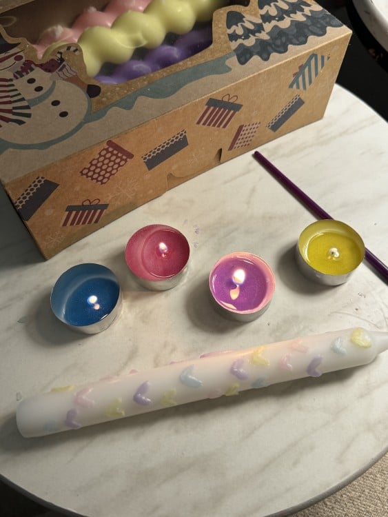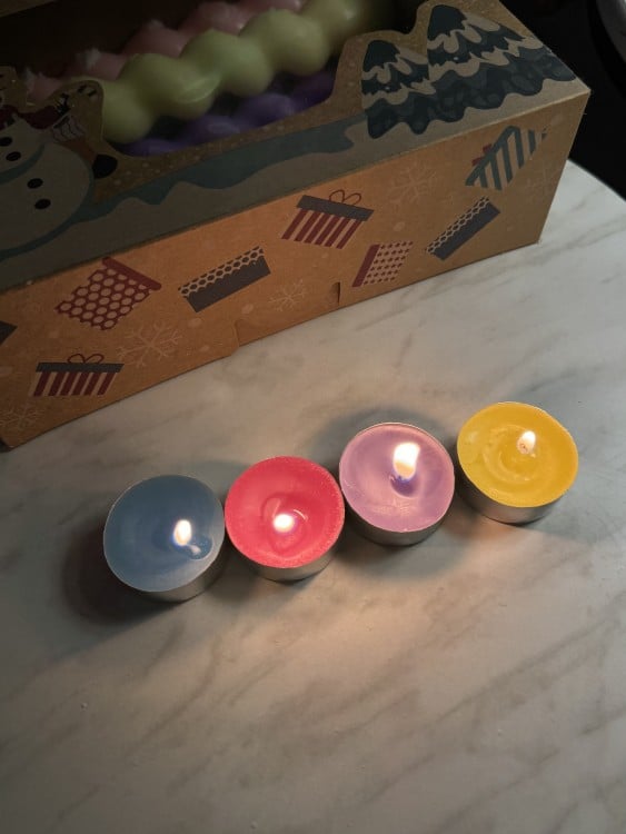 - 4 شموع ميني ملونه او بيضاء من اختيارك ( الالوان )
